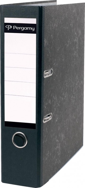 Pergamy ordner zwart voor ft A4, uit karton, rug van 8 cm, gewolkt