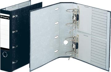 Met zelfklevend rugetiket. Met rado sleuven, grijpring en randbeschermers. Met dubbel hefboommechanisme. Ideaal om ontvangstbonnen en chequeboekjes in te bewaren. Rug van 8 cm. Kleur: zwart. uit PP en papier, zwart