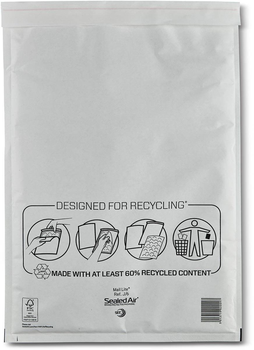 Mail Lite luchtkussenenveloppen, wit, J 6, 300 x 440 mm, doos van 50 stuks