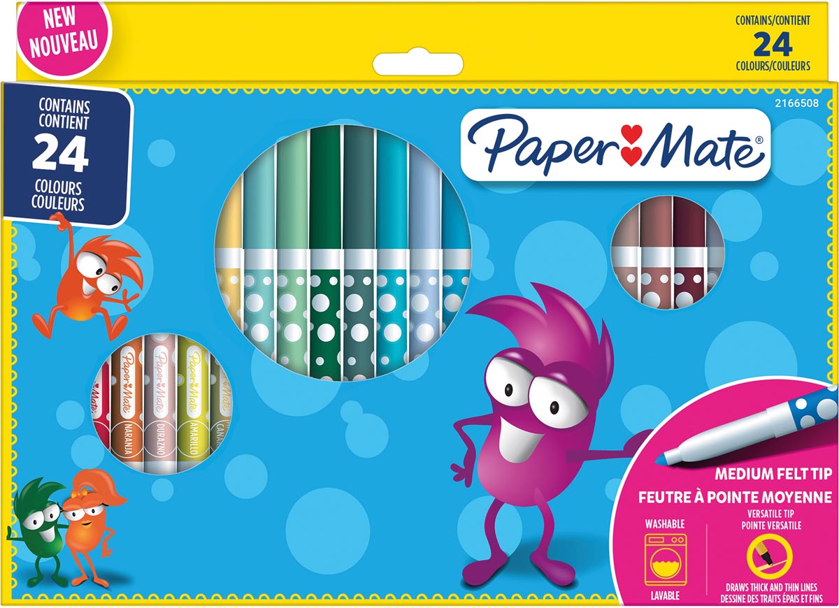 Paper Mate uitwasbare viltstift, blister van 24 stuks