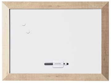 Ft 60 x 45 cm. In hout. Magnetische, droog uitwisbaar oppervlak. Met elegant en robuust frame. Inclusief wandmontageset, 2 magneten, bordwisser en whiteboardmarker. Geleverd per: 1 . Getoonde prijs is totaalprijs (exBTW). Pg. : 518