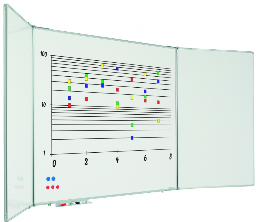 Whitebord met 5 schrijfvlakken van wit emaille staal (800 gr C). Extra vleugels zorgen voor meer schrijfruimte, maar toch compact in ruimtebenutiing. Geanodiseerd aluminium RC-profiel met grijze kunststof hoekstukken. Uiteraard geleverd met afleggoot.