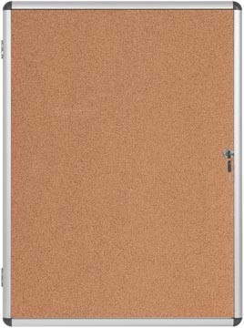 Elegante, extra slanke, lichtgewicht glazen kast met aluminiumlijst. Achterwand in kurk en deur in acryl voor uitstekende zichtbaarheid van het weergegeven materiaal. Voor binnengebruik, met sleutelvergrendeling. Diepte: 18 mm  ft 4 x A4 formaat verpakking 80,0cm x 75,5cm x 5,7cm